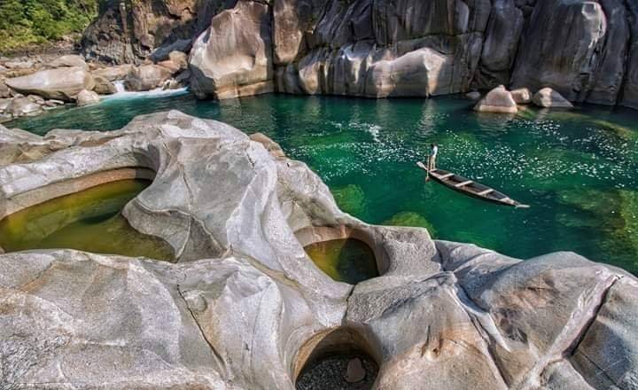 Dawki the last town in Mawlynnong, Dawki lies but 2 Kms from Bangladesh. Despite the fact that the area is located in a place that has been for years demanding development, one is amazed by the quality of the roads, and the road to Dawki perhaps epitomizes the idyllic hill drive. The black metalled road, offset by the rich, wet green and dark red-brown patches offered a smooth contrast that technology can scarcely capture. The cool, wet air brushes over your face and refreshes and revitalizes you as it enters your body. Dawki is a small village and its main attraction is the Umngot River that marks the natural separation between the Khasi and the Jaintia Hills. The river can be forded by a suspension bridge that connectsIndia to Bangladesh and facilitates trade between the two nations. The Umngot is the site for a boat race that is held in March-April, but evenotherwise, seeing this large emerald-green serpent threading its way through the hills, with fishermen’s boats dotting its surface, right into the plains of Bangladesh, is a sight whose majesty echoes long after you leave it. Then back to Shillong..Check into the hotel &rest..